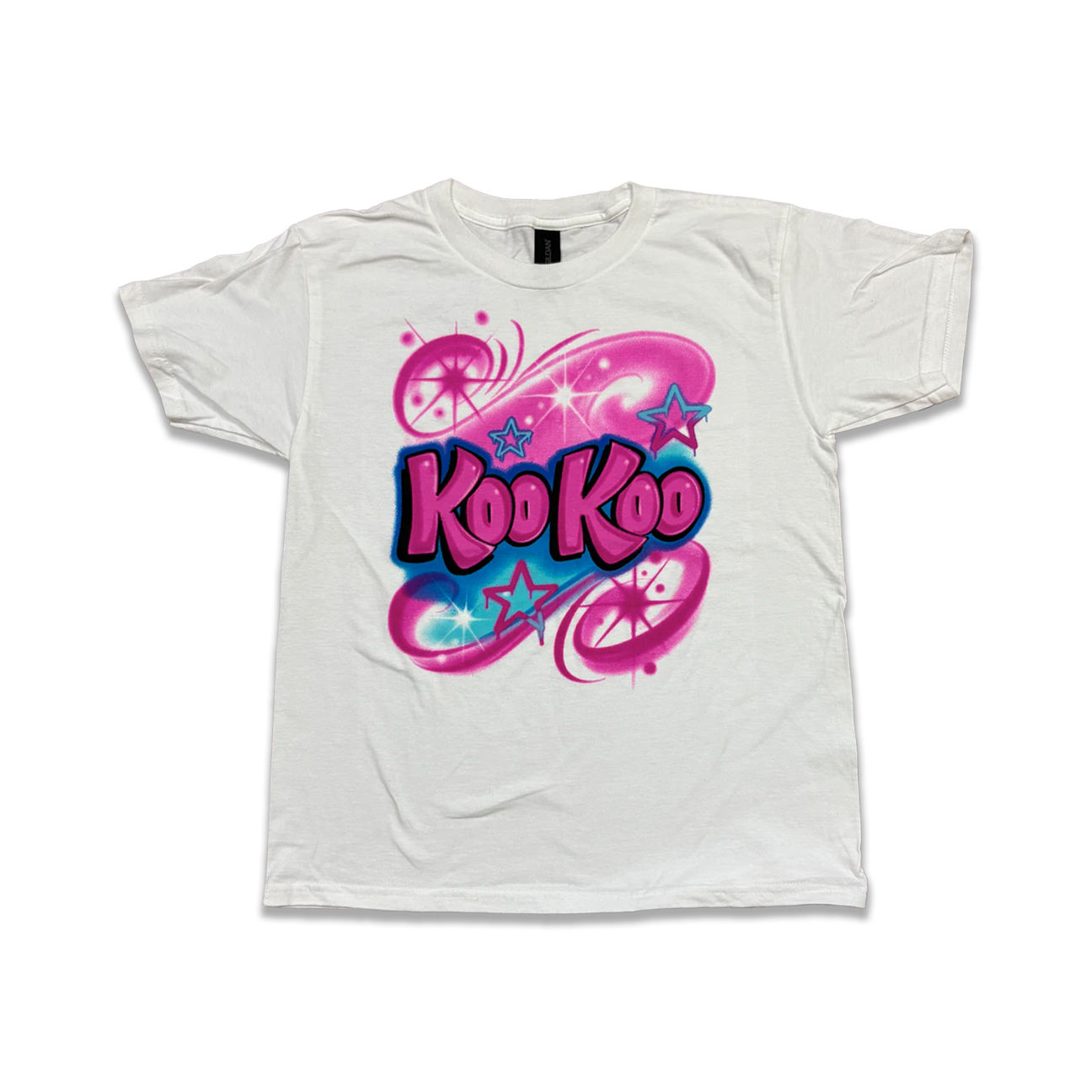Theme park style airbrush Koo Koo tee on white. Soft Style gildan shirt. Toddler/Youth/Adult available